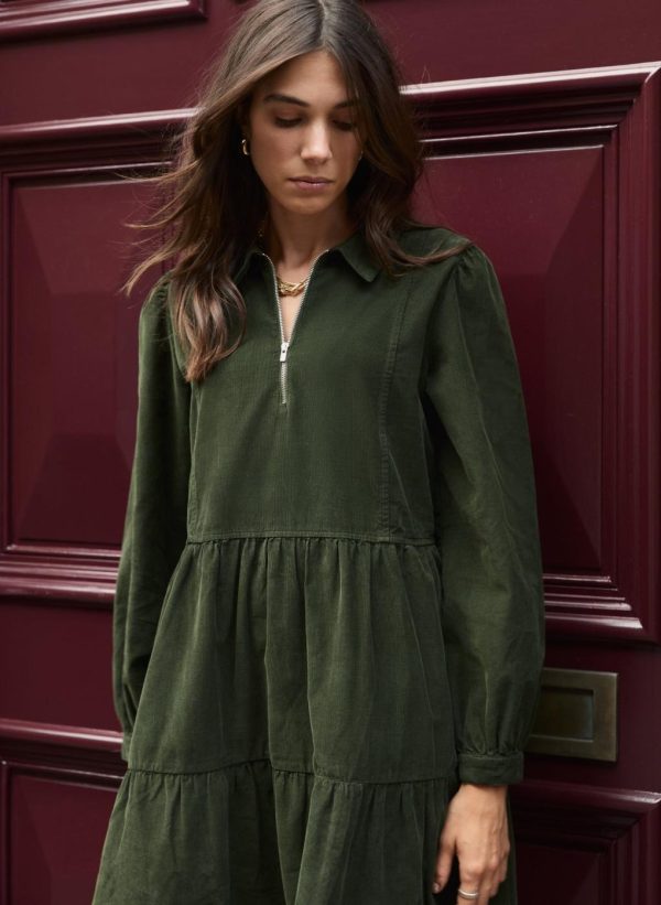 You can’t beat a pull-on-and-go dress in fine corduroy. Our Jean Midi Dress in organic cotton is cut for an easy fit with a shirt-style collar, zip neck opening and a generous, tiered skirt. Gathering into the cuffs and shoulders make it feel effortlessly feminine and elevated. Crafted in a deep shade of khaki, you can layer it up with boots, slouchy cardigans and rollnecks.