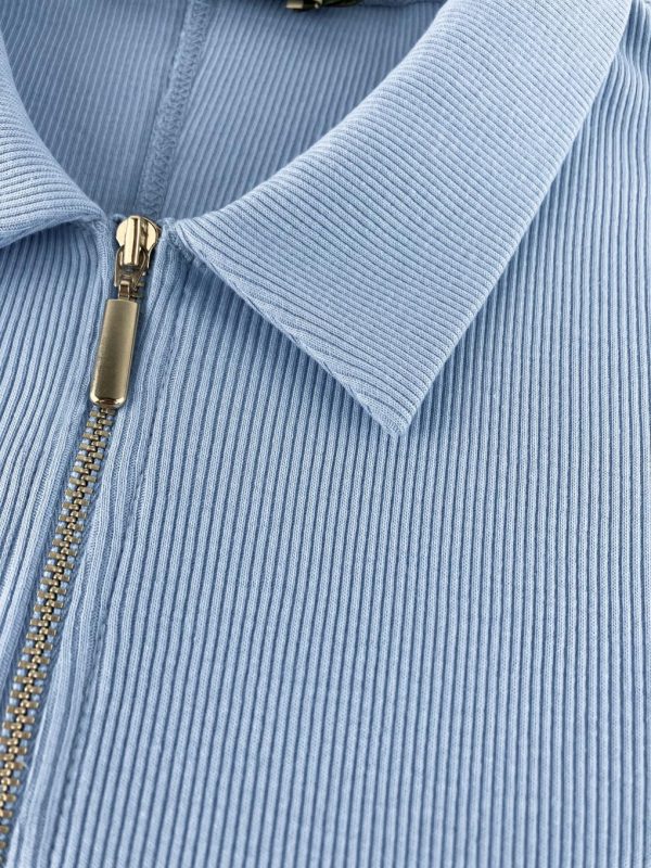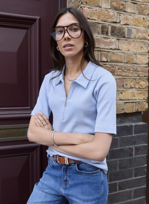 Tops | Women Baukjen Ivy Organic Rib Zip Collar Top Ice Blue