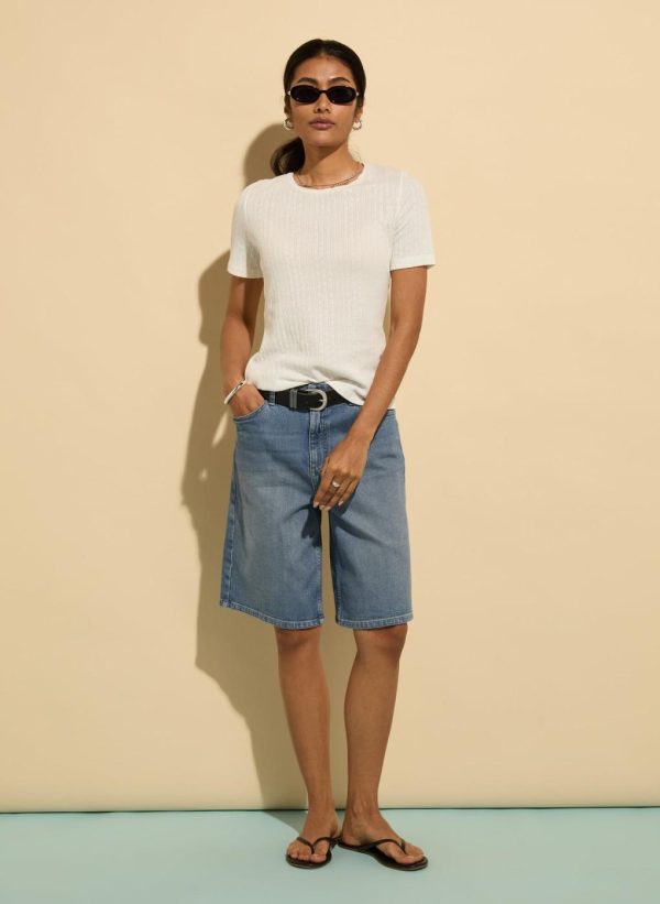 If you like your denim shorts cut on the longer side, look no further than our Britney Organic Cotton Shorts. This easy pair are a Bermuda style relaxed shape which finishes around the knees. Easy, timeless and stretchy, they look as chic with a white shirt and sandals in the city as they do with an open shirt and swimwear on holiday.