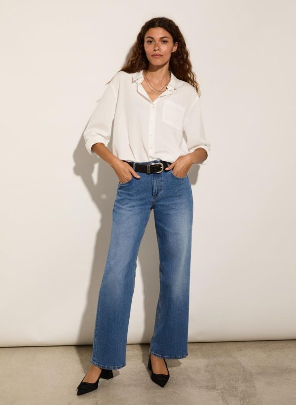 Trousers & Jeans | Women Baukjen Organic Stretch Cotton Wide Leg Slouch Jeans Mid Indigo